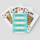 These Mid Century Modern Argyle Playing Cards (large print) feature a vibrant, turquoise background and a pattern of mod, translucent teal diamonds overlaying larger, vintage cream diamonds with gold coloured, space age speckles. This minimalist inspired, deconstructed argyle is a simplistic throwback of the larger than life atomic era that dominated the decorating landscape of the 1950s and 1960s. This kitschy design is reminiscent of everything from retro Palm Springs’ bowling alley signs to the television trays you used at your grandma’s house.