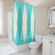 This Mid Century Modern Argyle Shower Curtain (vertical print) features a vibrant, turquoise background and a pattern of mod, translucent teal diamonds overlaying larger, vintage cream diamonds with gold coloured, space age speckles. This minimalist inspired, deconstructed argyle is a simplistic throwback of the larger than life atomic era that dominated the decorating landscape of the 1950s and 1960s. This kitschy design is reminiscent of everything from retro Palm Springs’ bowling alley signs to the television trays you used at your grandma’s house.