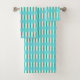 This Mid Century Modern Argyle Towel Set features a vibrant, turquoise background and a pattern of mod, translucent teal diamonds overlaying larger, vintage cream diamonds with gold coloured, space age speckles. This minimalist inspired, deconstructed argyle is a simplistic throwback of the larger than life atomic era that dominated the decorating landscape of the 1950s and 1960s. This kitschy design is reminiscent of everything from retro Palm Springs’ bowling alley signs to the television trays you used at your grandma’s house.