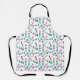 This apron has a mid-century modern design of arrows made from lines with different turquoise and beet-coloured shapes attached, on a field of white. Want the same design with different colours? Message me.
