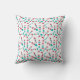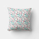 This throw pillow has a mid-century modern design of arrows made from lines with different turquoise and beet-coloured shapes attached, on a field of white. Want the same design with different colours? Message me.