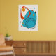 Mid Century Modern Atomic Blue Red Orange Abstract Poster