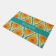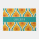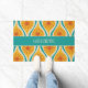 Mid Century Modern Atomic Drops Retro Pattern Turquoise Blue Yellow Orange. Fun space age vibe; 1950s 1960s mid mod modernist vintage aesthetic. Teal and mustard tones. Lively and cheerful. "Welcome" text can be customised. By Kierkegaard Design Studio.