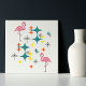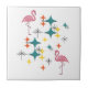 Mid Century Modern Atomic Starburst Pink Flamingos Tile