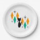 Mid Century Modern Atomic Starbursts Diamonds Cat Paper Plate