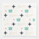 A 1960s space age theme with atomic stars, starburts and shapes. Colours include black, blue, pink, teal and yellow on a white background. Perfect for your next midcentury modern themed party.