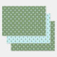 Mid Century Modern Stars and Dots Pattern in Olive Green and Light Ice Blue Wrapping Paper Sheets. Elegant, simple, tasteful, minimal midcentury modernist atomic starburst designs in vintage contemporary colours. By Kierkegaard Design Studio.