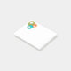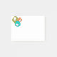 This Post-It notepad has a mid-century modern design of three circles, orange, green, and turquoise, with white circles inside with three stars in each. If you like the design but prefer different colours, message me.
