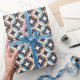 This mid-century modern pattern features blue and brown shapes.