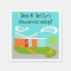 These Customisable Mid Century Modern Cartoon House Paper Napkins will have you wanting to put out the WELCOME mat and make yourself at home! The 1960's, minimalist art design features a sleek, orange stone and aqua glass house on a lush, green, boomerang shaped lawn. The lawn forms an oasis in the middle of its grey, concrete surroundings. A green palm tree is swaying in the breeze. Four, orange stepping stones lead the way to the retro, red, front door with three, rectangular, glass window panes. To the left of the door, a turquoise flowerpot holds a tropical, green plant. The house has a sloping, V shaped white roof that is pointing towards two, white, kidney bean shaped clouds. The sky is a positively serene shade of aqua. No one will want to throw stones from this modern, glass house design! Personalise for your special occasion. Buy this kitschy, space age product and be the coolest cat on your block!