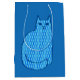 Gift bag with a Mid-Century Modern, retro cat design, in an abstract ribbon pattern - light and medium sky blue, outlined in dark navy blue, on a medium cobalt blue background