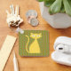 This fun keychain features a bold retro inspired design in shades of orange, olive green and blue with a bright yellow cat. Personalise the back with your choice text. Great for gift bags.