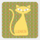 Mid Century Modern Cat on Geometric Pattern Square Sticker