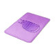 Bathmat in a Mid-Century Modern, retro cat design, in a silky, gradient pattern of light orchid to deep violet dots, outlined in deep violet purple, on an orchid background