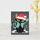 Mid Century Modern Cat Santa Hat Christmas 70s Ret Card
