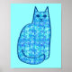 Mid-Century Modern Cat, Turquoise and Navy Poster