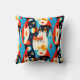 Pillow in a mid-century modern-inspired design featuring two stylised cats in bold, geometric shapes of orange, teal, black, and white. Abstract patterns and retro shapes fill the background, giving it a fun, vintage vibe with a minimalist edge.