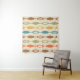 A 1950s style abstract art with geometric shapes of vertical chains and hexagons.The perfect gift idea for anyone who loves 20th century retro kitsch art. Bright vintage colours of brown, yellow, green, orange and blue.