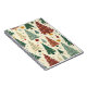 Notebook in a retro, Mid-Century Modern pattern of stylised red and green Christmas trees on a cream background