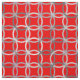 Mid-Century Modern design based on the classic interlocking circles pattern - mixed media graphic in shades of light grey on a deep red background