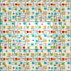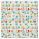 Fun mid-century modern fabric, design consists of black lines and colourful circles on a light yellow background. Design also has small starbursts throughout. A unique design created by a retired nurse.