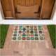A retro 1950s style abstract art pattern with bright and colourful buttons inside of squares.