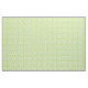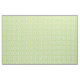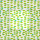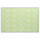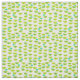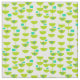 This fabric has a Mid-century modern design of green half-circles that look like cups strung together with turquoise starbursts and rectangles.