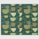 Mid Century Modern Dark Green Teacup Wrapping Paper