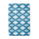 Bath mat with a Mid-Century Modern diamond grid of nested marquise shapes - medium denim blue and light sky blue, with white, and dark navy / indigo accents