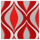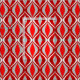 Fabric with a Mid-Century Modern diamond grid of nested marquise shapes - light silver grey / grey and dark Chinese red. with rich tomato red, and white accents