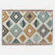 Sleek and minimalistic, this pattern features retro diamond shapes in earthy browns, mustard yellow, and muted blues.