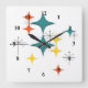 Mid Century Modern Eames Atomic Starbursts Numbers Square Wall Clock