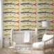 Mid-Century Modern Fish Pattern Bold Playful Wallpaper