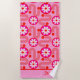 Mid Century Modern Floral Pattern with Name Pink Beach Towel