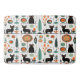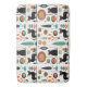 Mid Century Modern pattern with black cats. turquoise and orange abstract trees leaves plants.
