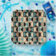 Retro Mid Century Geometric Half Square and Circle Pattern Black Beige and Turquoise.