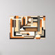 This striking geometric abstract artwork blends mid-century modern aesthetics with a contemporary edge. Featuring bold, dimensional shapes in a neutral palette of beige, taupe, browns, and warm grey, the design is elevated by burnt orange accents and subtle 3D effects that add depth and intrigue.