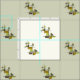 A vintage styled abstract art design, inspire by the 1950s atomic era movement, has bold lines and colourful squares & rectangles in chartreuse green brown.