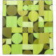 This retro 1950s styled abstract art pattern has squares, circles and half circles in shades of chartreuse green.