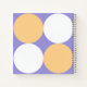 A trendy spiral-bound notebook, with mid-century modern geometric design on the cover. The circles are yellow and white on a light purple background. Personalise the trendy notebook with the recipient's name for the finishing touch.