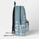 A stylish backpack bag featuring a mid-century modern geometric pattern. Personalise it with your name or a custom word! Perfect for carrying your essentials. Printed colours: blue, white and dark grey.