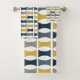 Mid Century Modern Geometric Pattern Navy Mustard Bath Towel Set