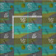 Unique mid-century modern green, teal and gold abstract with hints of grey. Various abstract shapes and black intersecting lines.