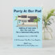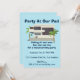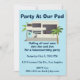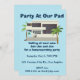 Mid Century Modern housewarming party invitation. The house is of the type seen in Southern California with text saying "Party At Our Pad" and "Calling all cool cats" for that mid century slang vibe.