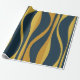 Mid Century Modern Retro Lounge Striped Ogee Pattern in Navy Blue and Mustard Wrapping Paper Roll. Contemporary midcentury mid mod abstract design; funky 50s 60s 70s aesthetic. Rich colours. Elegant, lively, chic gift wrap. By Kierkegaard Design Studio.