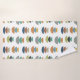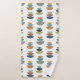 This towel set has a retro orange washcloth, a retro red hand towel, and a bath towel with a mid-century modern design of semicircles stacked in three in retro colours on a field of white. Want the same design with different colours? Message me.