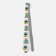 This necktie has a mid-century modern design of semicircles stacked in three in retro colours on a field of white.