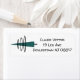 These return address labels have a mid-century modern design that looks like a mobile with half circles, skewed rectangle, triangle, lines, and circles in red, green, teal, orange and black.