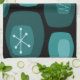 Mid Century Modern Oblongs Black Teal Tea Towel