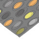 An atomic age inspired pop-art design with shades of slate grey, as well as yellow and orange highlights, on ovals and scribbles. For anyone who loves 20th century space-age art.